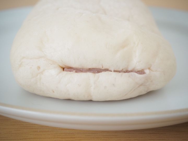 いよいよ実食です。白パンの表面は、指に吸い付くようなもちもち感とふわふわ感が。噛めば餅のような弾力を楽しめ、食べ応えばっちり!小麦の甘さとほんのりと感じる塩気のバランスが良く、パンだけでもイケる…!