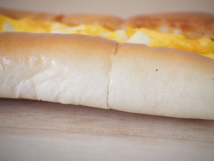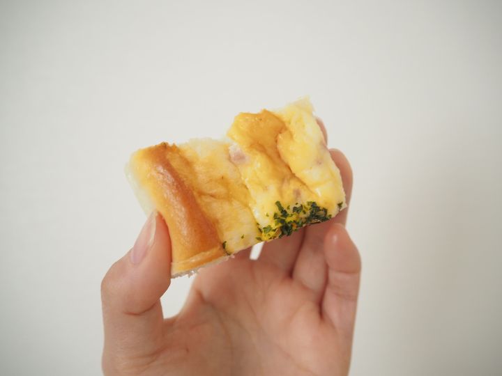 まずはたまごから試してみます。切込みのおかげで簡単にちぎれ、具材がこぼれることもないので、ストレスになりません。パンはお総菜パンにぴったりな、ほのかに甘くて柔らかい仕様になっています。味は卵感が強く、ざく切りにされたゆで卵は食感でも楽しませてくれます。