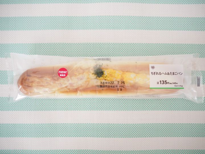 「ちぎれるハム&たまごパン」は145円(税込)。常温のパンを扱うコーナーで見つけることができました。