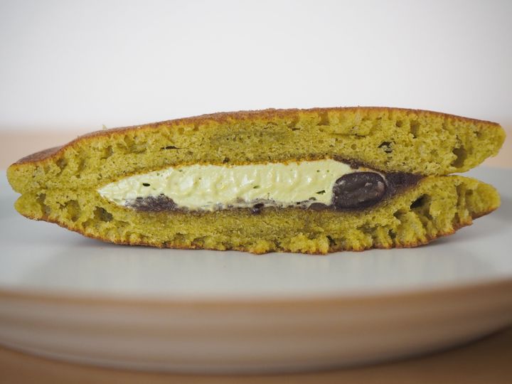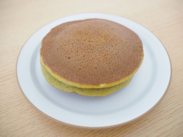 そう思いながら横から見たところ、生地はしっかり抹茶色であることがわかりました。それにしても、ますますどら焼きにしか見えない…!