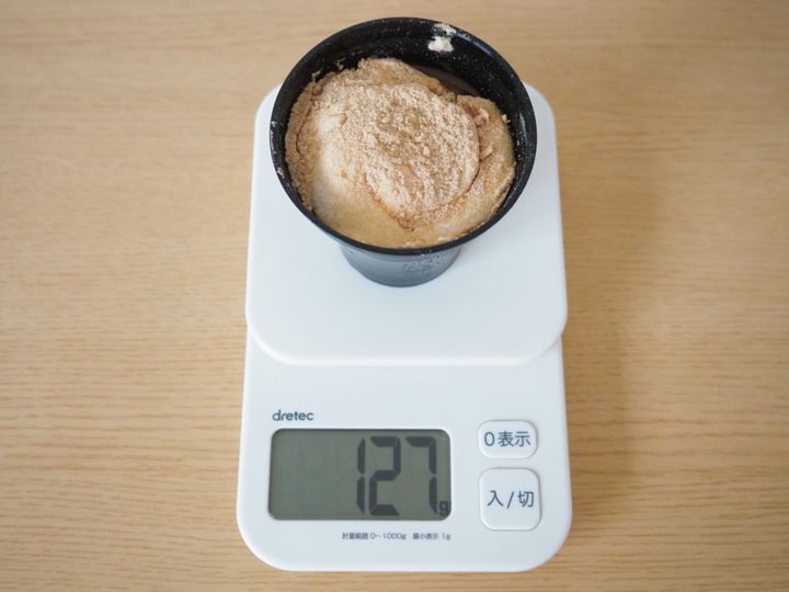 量ってみたところ127gでしたが、容器が11gなので、実際には116gです。