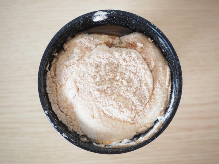 ふたを開けてみると、表面はホイップクリームときな粉で覆われていることがわかります。