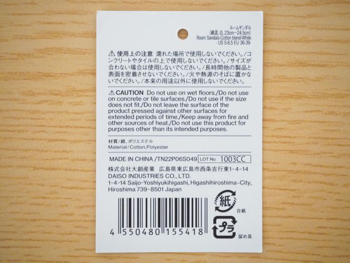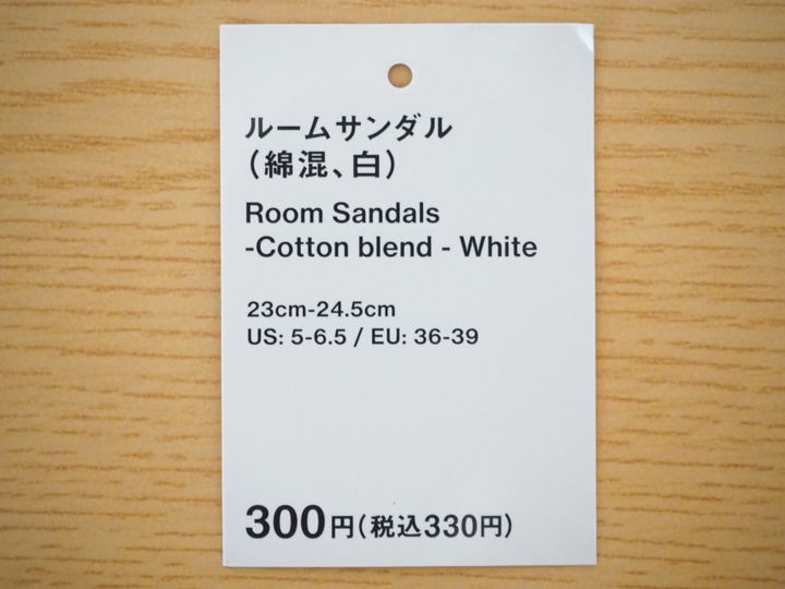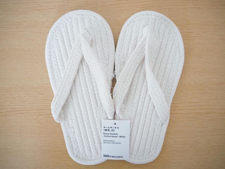 こちらが「ルームサンダル」で、価格は330円(税込)。使う人と家を選ばないシンプルなデザインも手に取りたくなる理由の1つ。