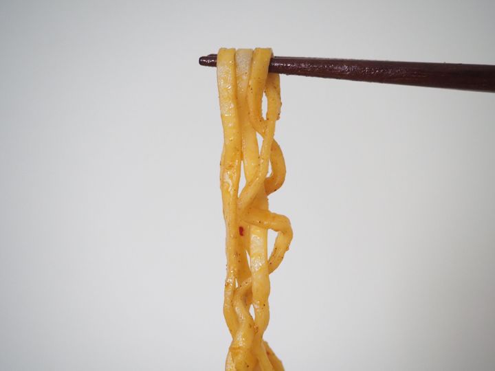 麺を見てみると、一般的なインスタント麺より明らかに太い!