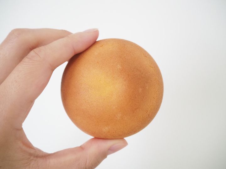 生地はパッケージにある通り。最初の印象はしっとりで、噛むとホロホロと崩れます。優しい甘さと卵の風味が印象的で、卵パンに近いかも?