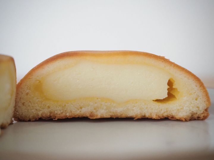 中はチーズクリームがしっかり詰まっています。もっと緩めのクリームかと思っていましたが、意外にも完全に固形です。
