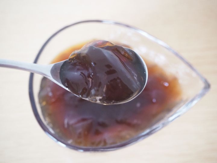 小皿に移してみたところ、見た目は至って普通のコーヒーゼリーです。
