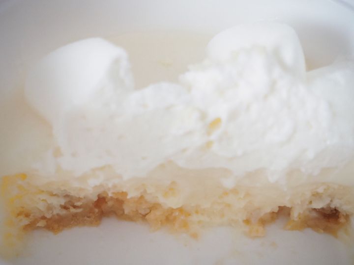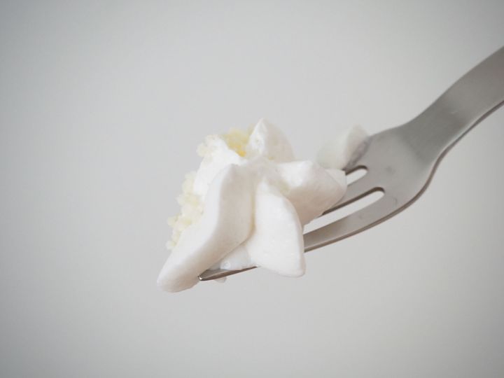 中身も本当に白いのでしょうか?食べ進めてみると、確かに白い!チーズクリームのトッピングの下には甘みと酸味、そしてとろみのあるチーズソースがあります。