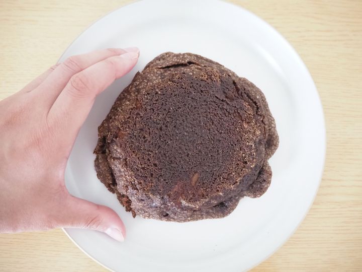 覆っているクッキー生地が崩れやすくなっているので、持つのは断念。しかし片手で持って食べられる程度の大きさです。