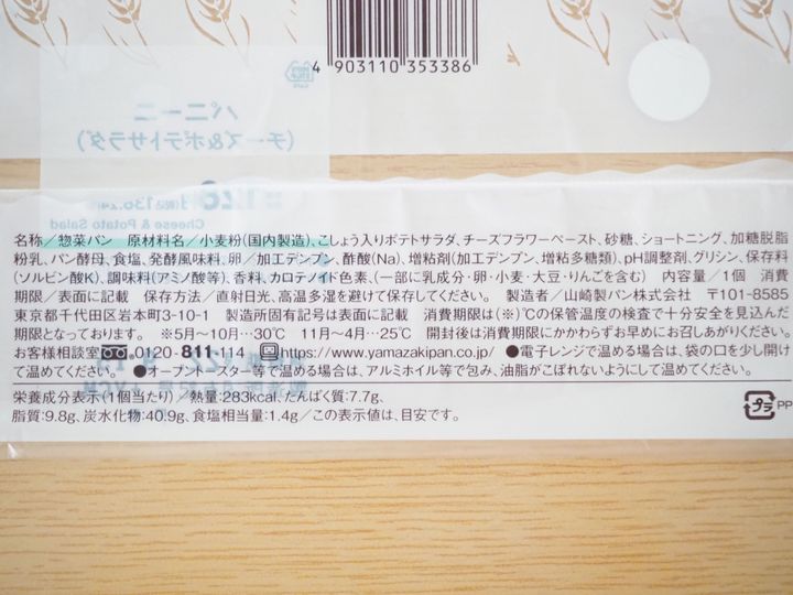 原材料表記を見てみると、ポテトサラダはこしょうが入っているようです。チーズはフラワーペーストタイプなので、がっつり楽しむというよりは風味付けかも?