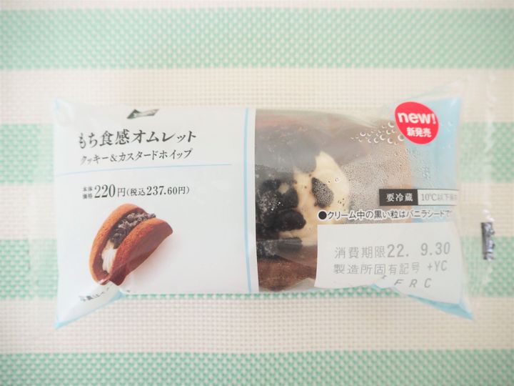 こちらが「もち食感オムレット クッキー&カスタードホイップ」で、価格は237.60円(税込)。