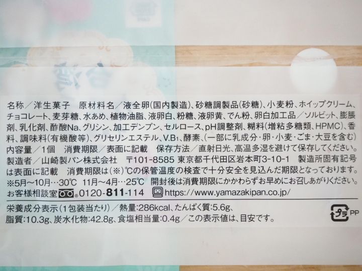 製造を担当するのは山崎製パンで、カロリーは286kcal。なお私が購入したものの消費期限は、購入日を含む3日でした。