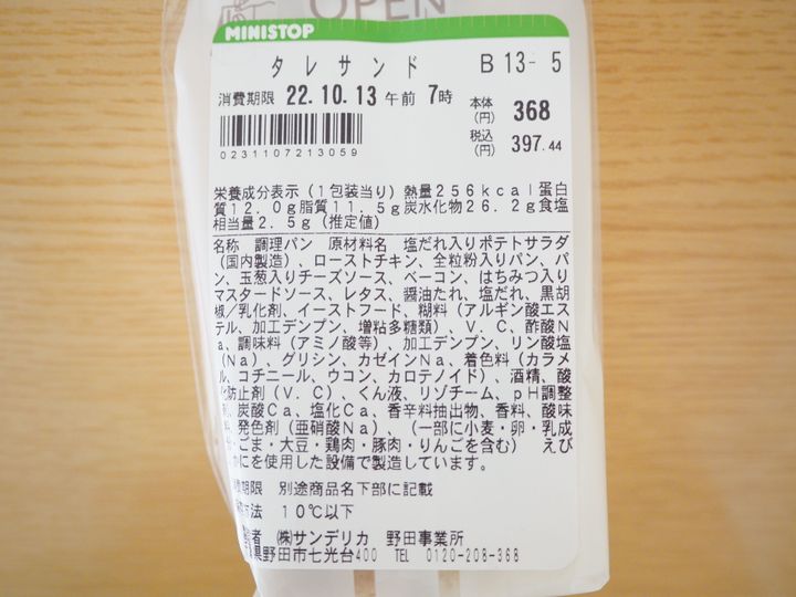 カロリーは256kcal。私が購入したものの消費期限は、購入日を含む3日でした。