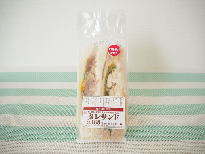 というわけで、気になりすぎて手に取ったサンドイッチがこちら。「タレサンド」は397.44円(税込)とサンドイッチの中でもやや高めの商品です。