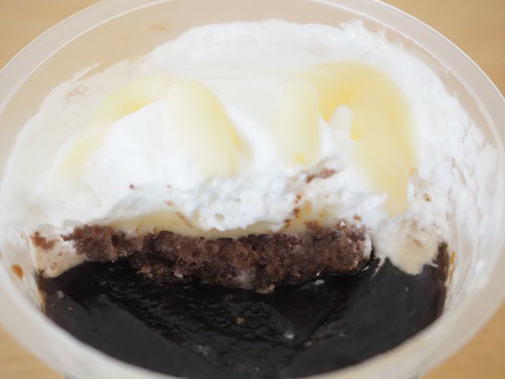 ふたを開けると現れるのは、コーヒーゼリーを覆うほどにトッピングされたミルク風味フィリングと練乳。なかなか迫力のあるボリュームですが、コーヒーと合わさると、どういった味わいになるのでしょう?