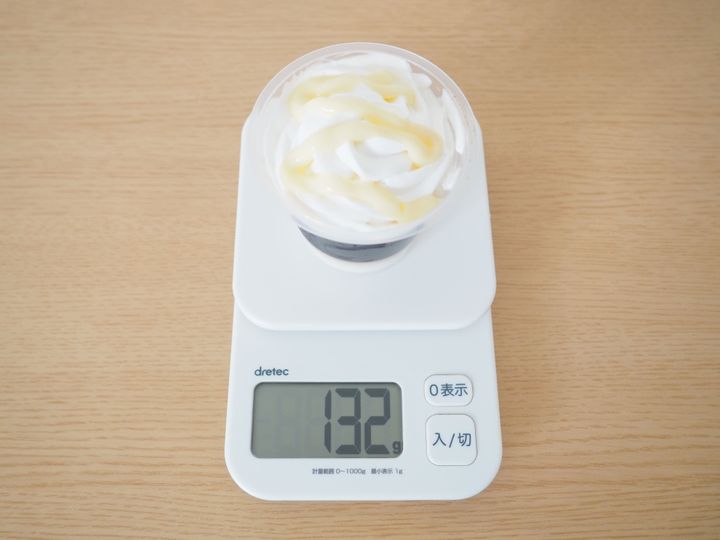 量って見たところ132gでしたが、容器の重さが10gなので、実際には122gです。
