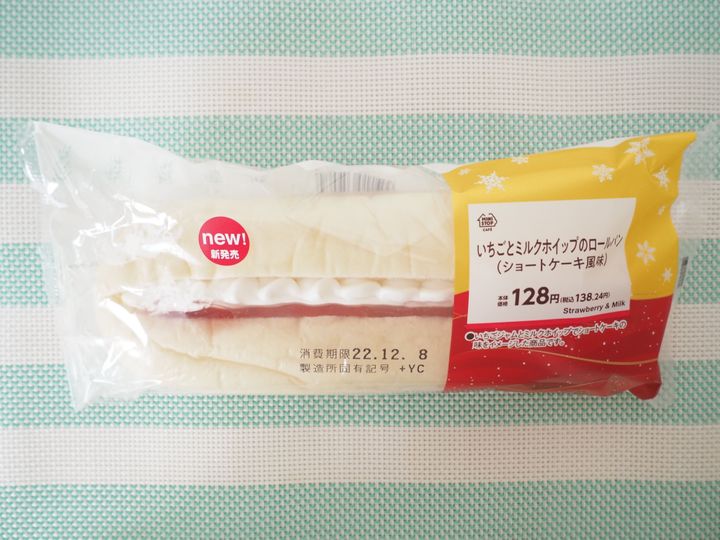 こちらが「いちごとミルクホイップのロールパン」で、価格は138.24円(税込)。クリスマスの定番スイーツであるショートケーキをイメージした商品です。