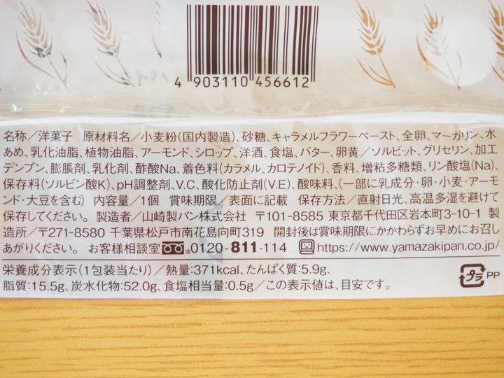 カロリーは371kcalです。私が購入したものの賞味期限は、購入日を含む6日でした。