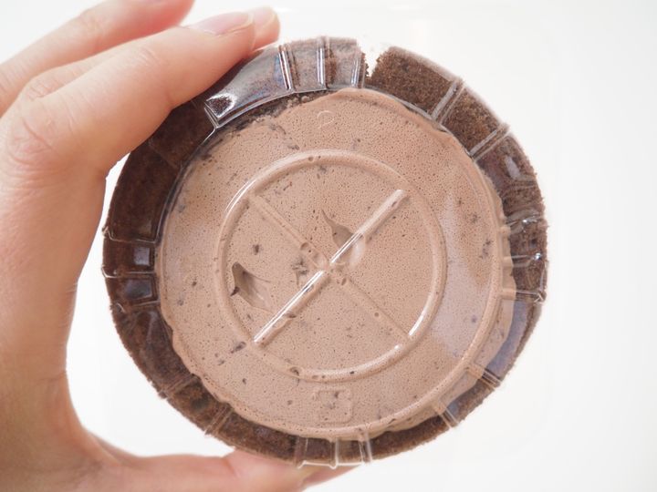 どうやら、トレーにココアスポンジを入れて、その中にクリームを絞っているよう。これは、トレーに入れっぱなしの方が食べやすそうです。