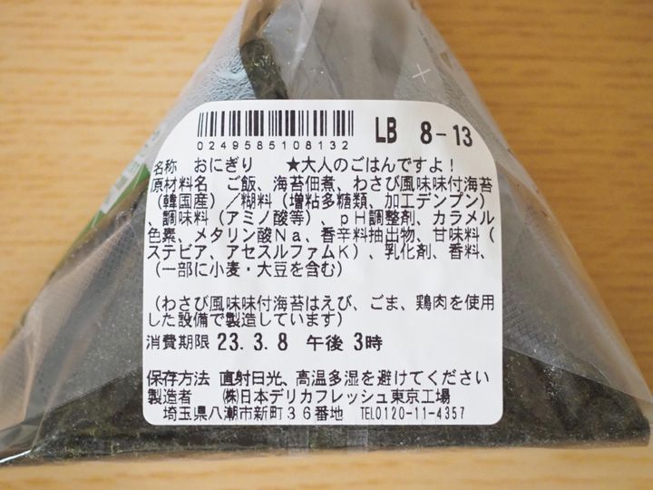 カロリーは163kcalです。なお今回購入したものの消費期限は、購入日を含む2日でした。