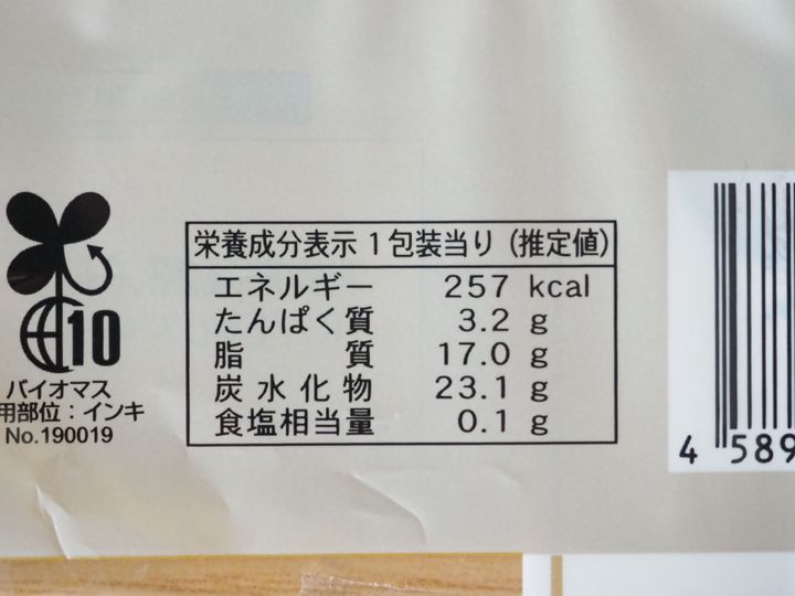 カロリーは257kcalです。なお今回購入したものの消費期限は、購入日を含む5日でした。