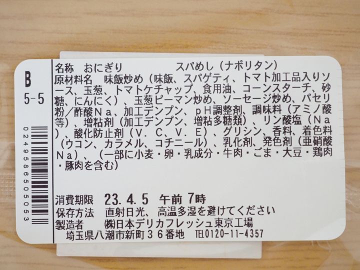 カルボナーラは96gの表示で、同じくトレーの2gを引くと94g。どちらのおにぎりもほぼ同じ重さといっていいでしょう。