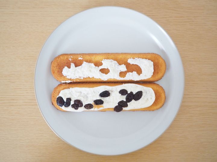 試しに中身を見たところ、レーズンは12粒入っていました。まんべんなく散らされているので、しっかりと味を楽しめそうです。