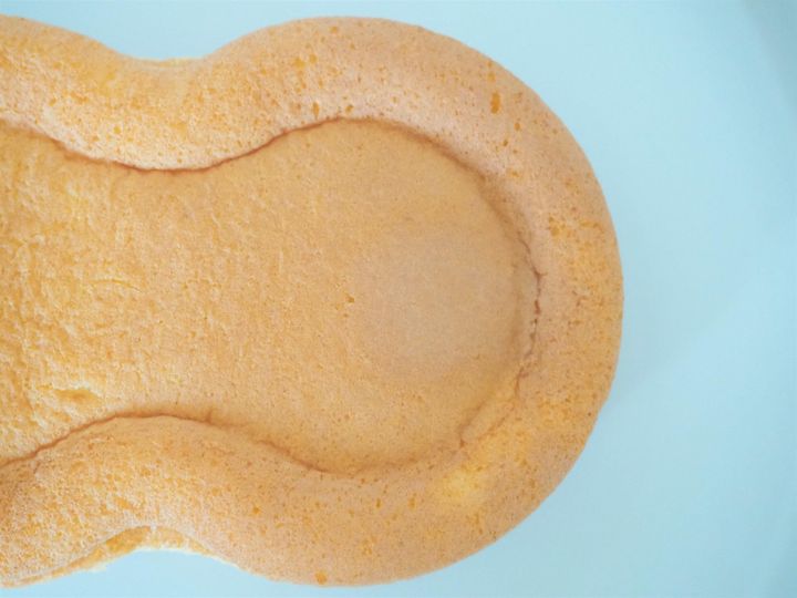 上から見ると、形はちょっと珍しいひょうたん型。見るからにふんわりしっとりしていて、おいしそう…!