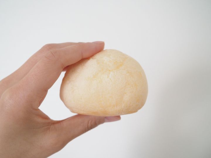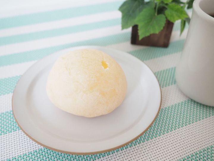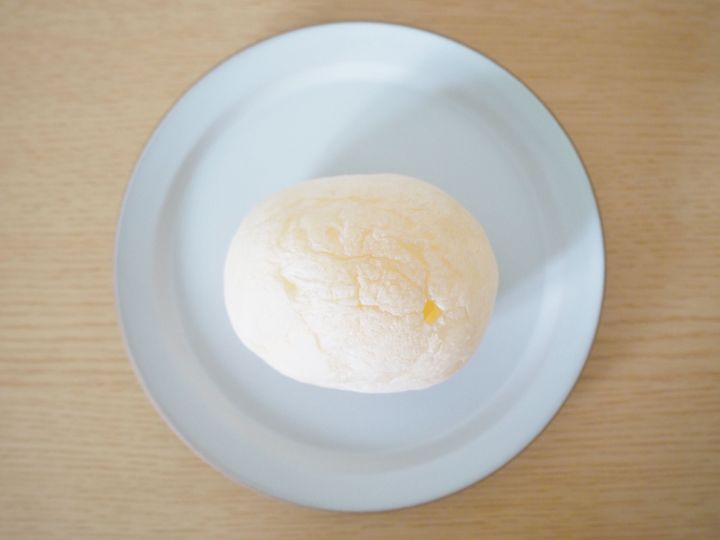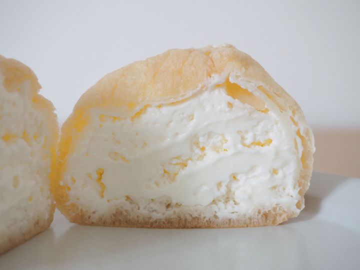 見た目はというと、白いシュー生地とゴツゴツしていない表面のためか、白パンのような印象です。しかも、やや楕円形ということで、一般的なシュークリームとは少し様子が異なります。