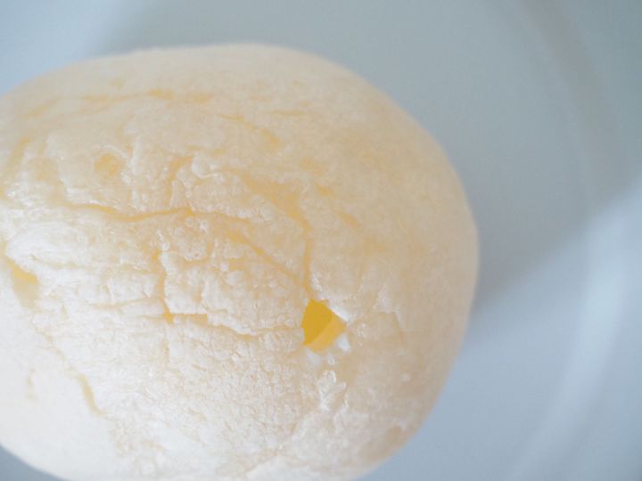 ちなみに、シュー皮の表面に触れている限りは、まだもちとろ感は伝わってきません。