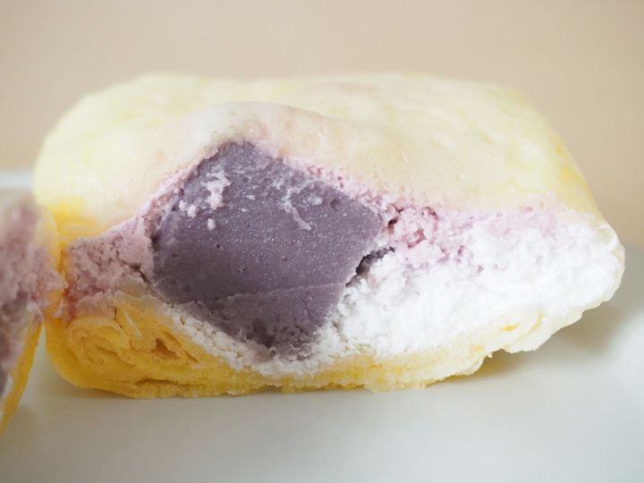 紅芋スイートポテトは、あんこのような食感。紅芋の自然な甘みと香りが鼻に抜け、幸せな気分に。これよりも甘みが少し強くなるのが、紅芋風ホイップ。こちらも風味がいい…!