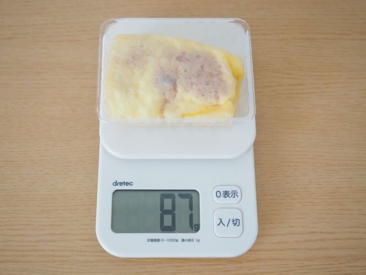 量ってみたところ87gでしたが、トレイが1gなので、正味86gです。