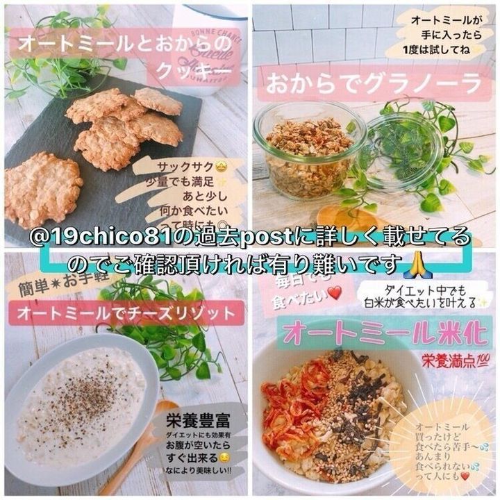 私自身のInstagramでも、過去に何個かオートミールのレシピを出しています。