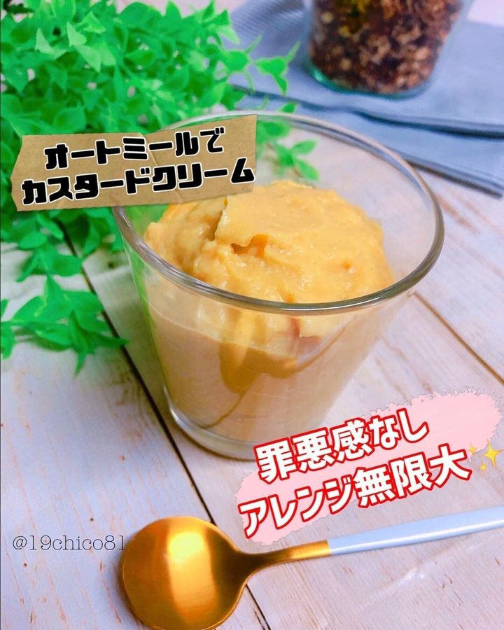 こちらも材料4つで、オートミール以外は卵、牛乳、砂糖と家にあるもので揃うし、レンチンだけであっという間に出来るので、ダイエット中の甘いもの欲がある方にもオススメしたいレシピです。