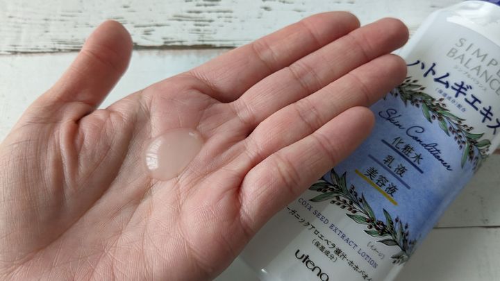 成分はハトムギエキスに加えてオーガニックアロエベラ液汁、ホホバオイルが配合されています。