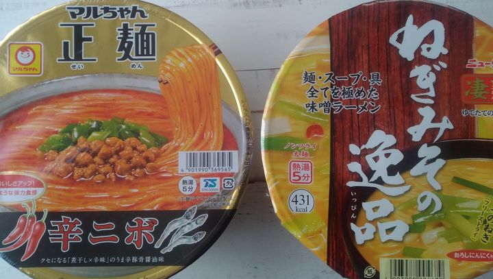 お皿を洗うのも面倒、時間がとにかくない、だけど美味しいラーメンが食べたい、というときはこちらのカップ麺の出番です。凄麺シリーズはご当地ラーメンをたくさん出していますね。マルちゃん正麵カップは醤油、味噌、担々麺、焼きそばなどがあります。中でもお気に入りはこちらの2つです。