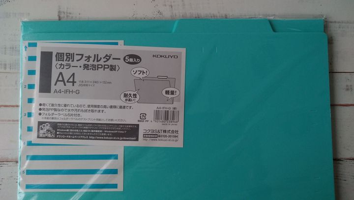 コクヨ KOKUYO A4-IFH-G [個別フォルダー カラー PP製 5冊パック]