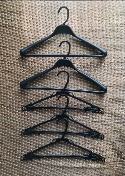 そのため、乾いたらすぐにクローゼットに直行できるよう、連結ハンガーは使用していません。クローゼット用のハンガーに干すようにしています。