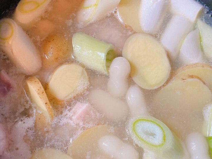 ジャガイモ、鶏肉、ネギ、トッポギを入れて煮てみました。