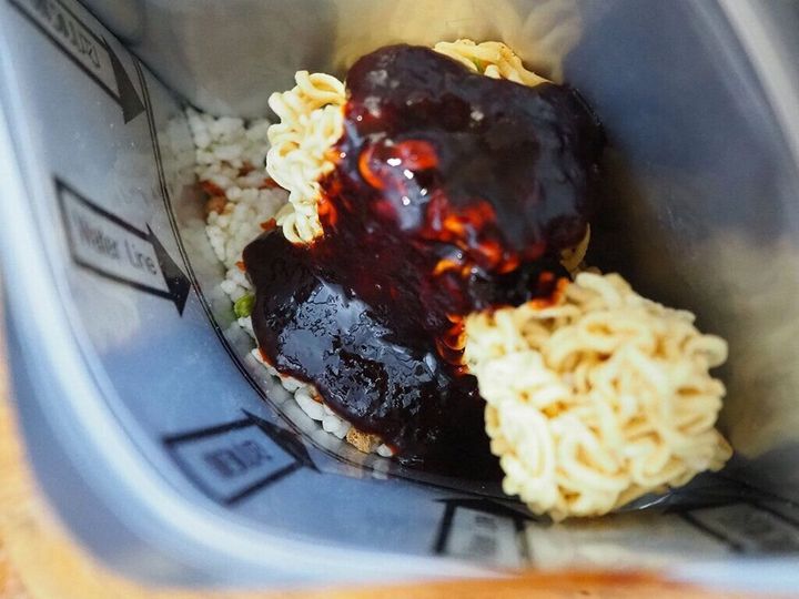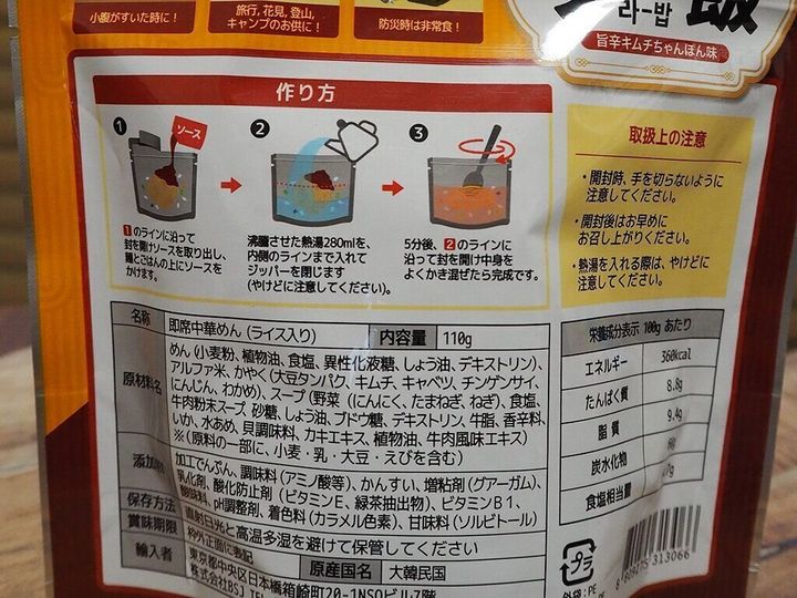 袋の中に直接お湯を入れて食べるとのこと。