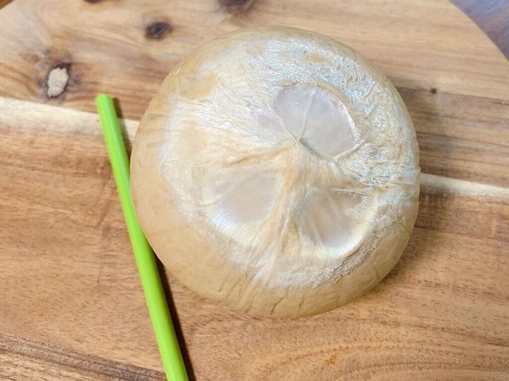 ココナッツの下の部分に3つへっこみがあるので1番上の部分にストローを刺します!