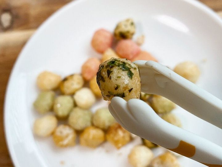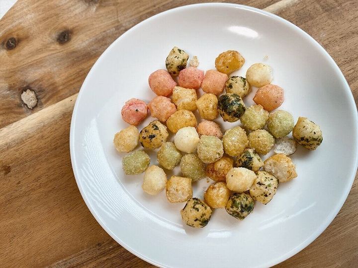 5種類のあられ(うめ味・塩味・ざらめ味・醤油味・のり味)をミックスしてあります。