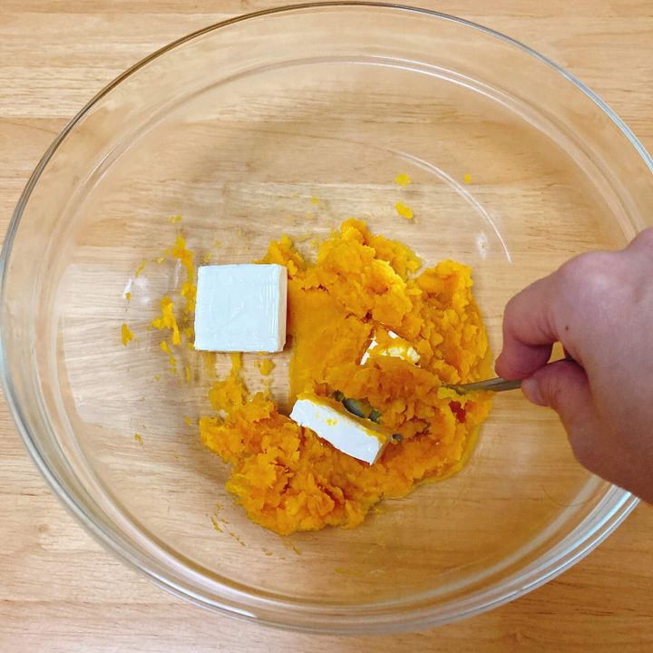 ・クリームチーズが得意じゃない方は、かぼちゃが冷めてからホイップクリームをサックリ混ぜてもよいです。