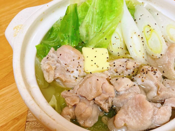 【鍋つゆ不要】家にあるもので楽しめる!コクうま 鶏の塩バター鍋