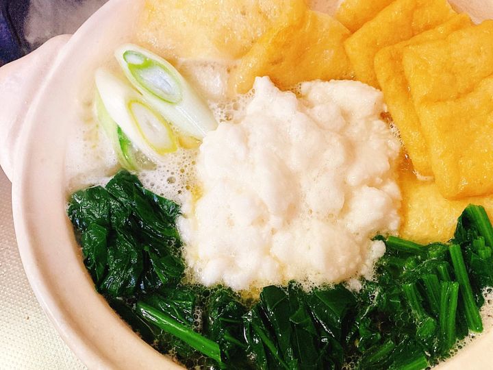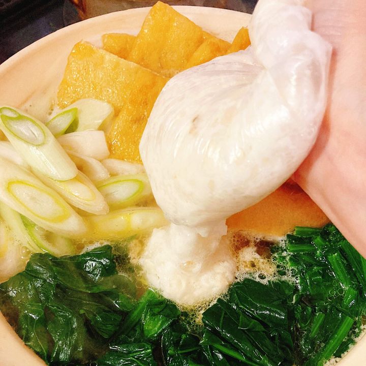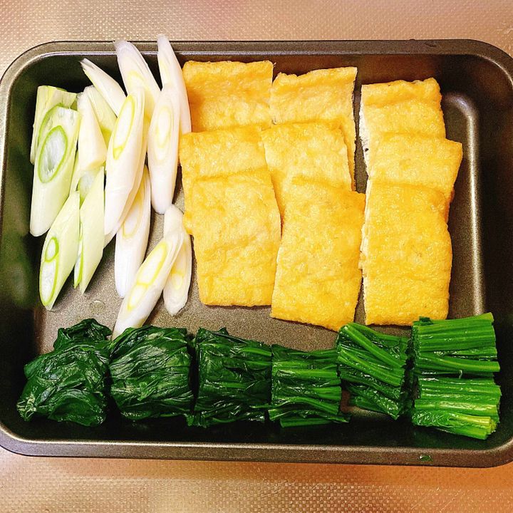 ほうれん草は下茹でし(冷凍を使えばココは無しでOK)、ねぎ・油揚げ・鶏肉とそれぞれ好きな大きさに切って、