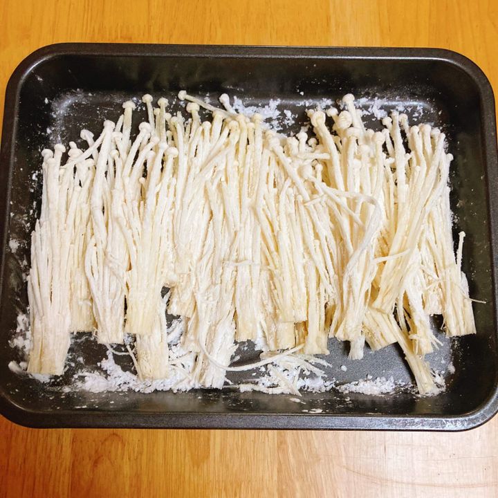 ・揚げ焼きは、えのき同士を離して加熱するとキレイに仕上がります。