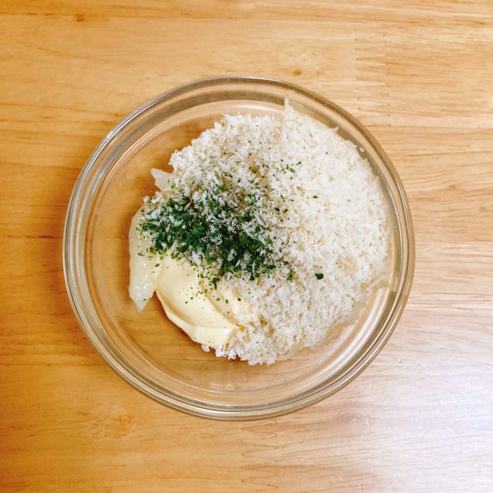 パン粉・マヨネーズ・にんにく・パセリは混ぜておく。