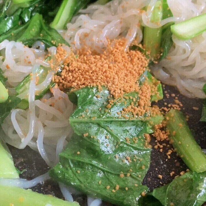 しらたきは、あく抜き済みを使って小松菜もザクザク好きな長さに切れば、工程がグッとラクになります。
