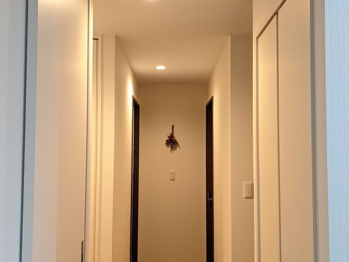 しかし現実はそうもいかず・・・。我が家には元気な男の子ねこがふたりもいるので、目立つところに観葉植物や雑貨を置けません。そこで、廊下のすみっこの壁を季節の場所にしています。