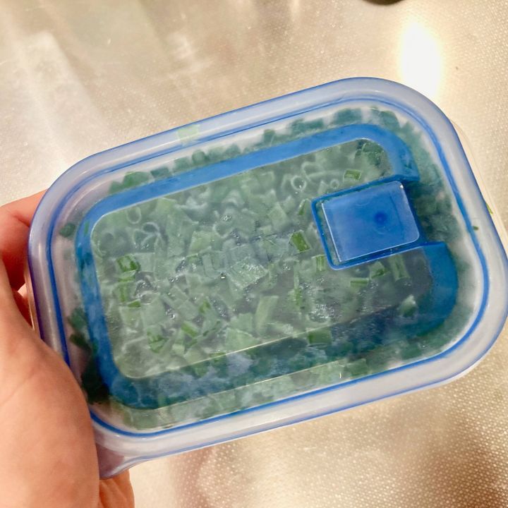 家にあるタッパーを使えるから冷凍庫のスペースに合わせてサイズを使い分けられるのもポイント。冷凍小ネギのかたまりにストレスを感じていた人は試してみてください!